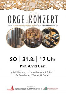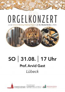 Prof. Arvid Gast an der Orgel St. Nicolai-Kirche Mölln, Mai 2022